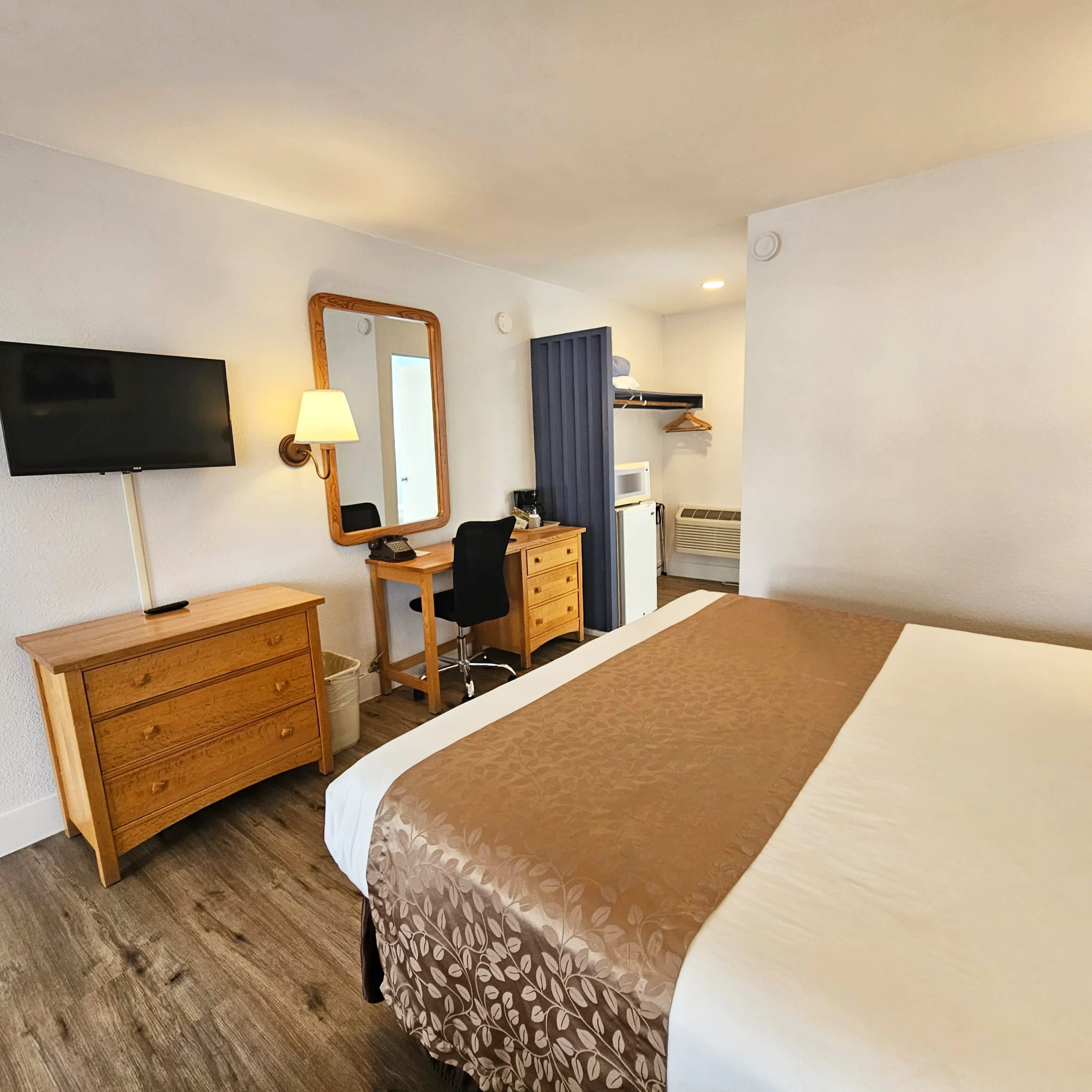 Imagine waking up to the serene sounds of nature and stepping out onto your private patio, just steps away from our pristine pool. Our King Bed Poolside rooms offer: