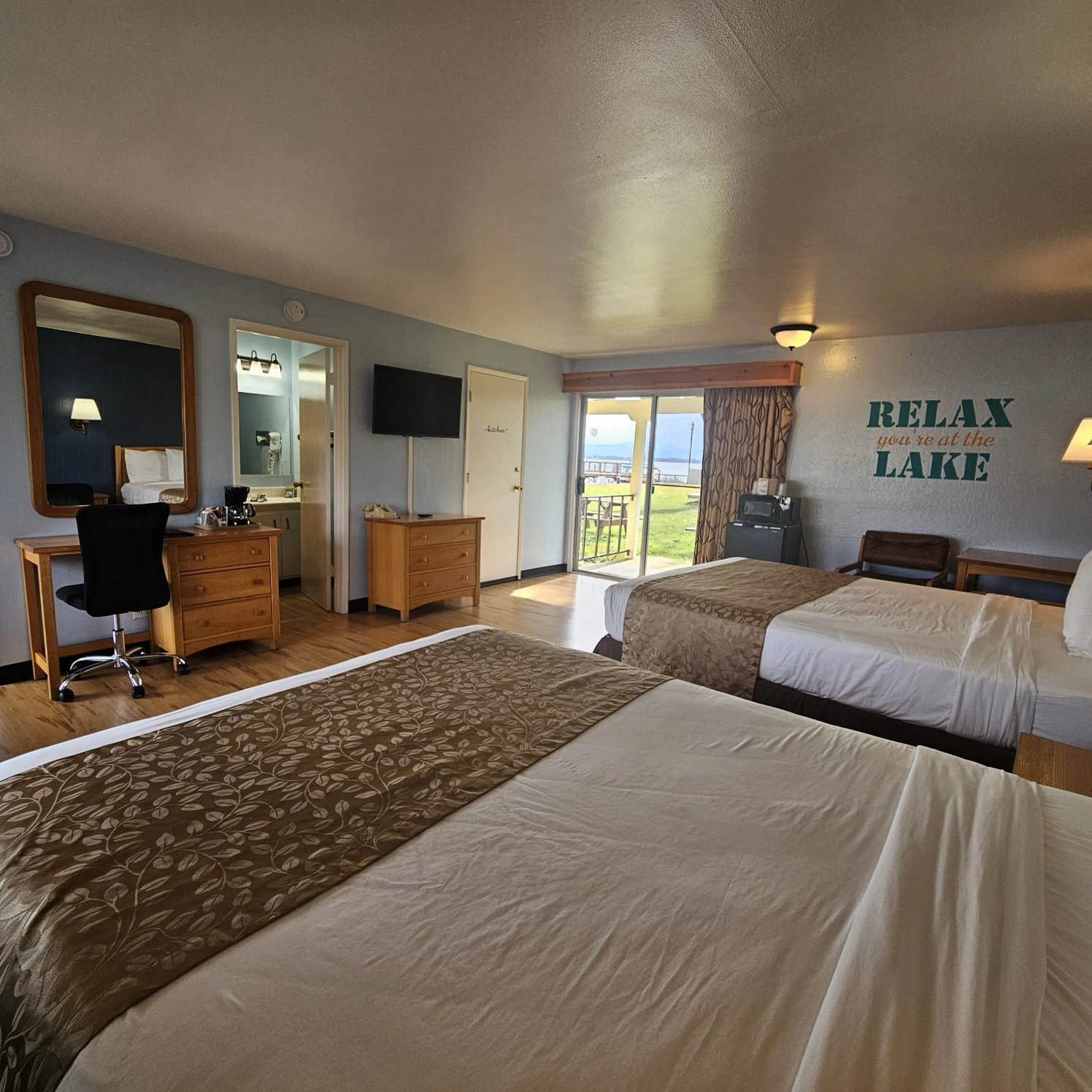 Welcome to Skylark Shores Resort, your perfect retreat in the picturesque town of Lakeport. Nestled along the serene lakeshore, our resort offers a blend of comfort, convenience, and natural beauty. Experience the best of both worlds with our Lawn View Rooms featuring Two Queen Beds, a fully equipped Kitchen, and a relaxing Bathtub, making them ideal for families, friends, or extended stays.